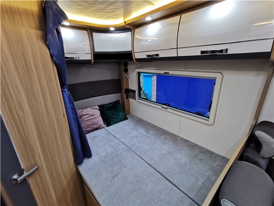车厢内部EO级环保家具+地板革,日式工艺,轻奢内装温馨舒适!前额头配有天窗及双人床(2210*1500mm)。影音娱乐配有互联网智能电视(可选装投影幕布)搭配高品质音响,带来非常好的娱乐以及视听感受。