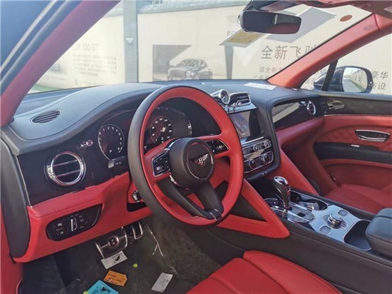 21款宾利添越配备了全新样式的三辐式多功能方向盘,整体质感良好,中控台中央悬浮式液晶屏设计,上方圆形出风口是宾利独有的“牛眼式”出风口设计。新款宾利添越内饰几乎全部被顶级的牛皮包裹,而且全部是由技术优异的工匠纯手工打造,辅以少量的木纹和金属装饰,华贵至极。