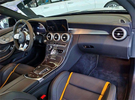 奔驰AMG C63内饰氛围上并没有像外观那般激进,三辐式AMG方向盘,无论造型还是功能上,都可以是乱龙点睛之笔,底样式握柄处采用了Nappa皮革包裹,并在三九位置加入DINAMICA微纤维材质,手感非常的舒服。不仅增加了舒适性还增加了设计感,12.3英寸全液晶表盘,显示效果更加的清晰,可根据驾驶模式切换界面主题,具有很强的科技感与时尚感。