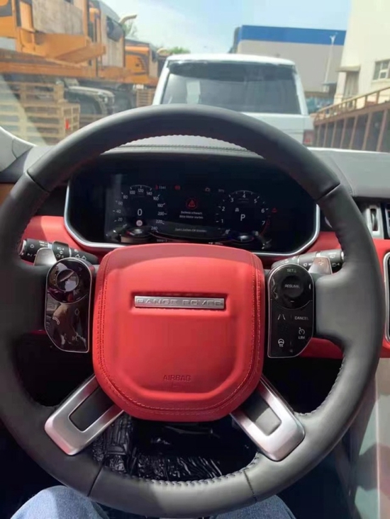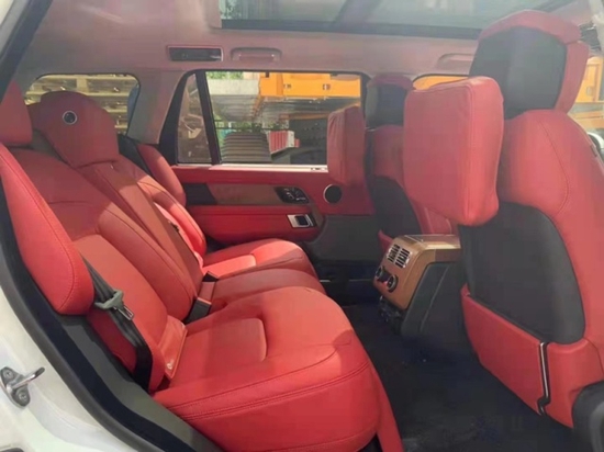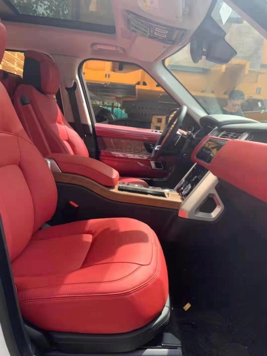 路虎揽胜创世加长内饰均采用精心设计及精湛工艺,并选用最为顶级的皮革及材质,仪表板、手套箱盖、中央通风口四周、车门内饰板和方向盘后均采用全真皮包裹,甚至驾驶者的膝部气囊的外层也同样采用了真皮装饰。