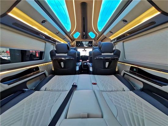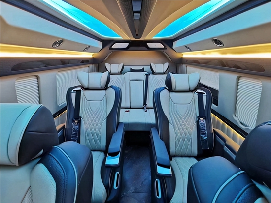 海狮保持了丰田一贯实用性的设计,全车采用了四张触控屏控制的航空座椅,座椅构造更符合人体曲线,令旅途行车倍感舒适,后排还有电动沙发座椅。海狮改装商务车不仅提供给我们舒适的乘车环境,车内还配置了高端音响设备,为我们在旅行中提供了优质音乐和旋律的需要,再加上车内增加了隔音设备,对回声的处理,丰田海狮改装商务车,更是为我们提供了最舒适的环境,宽敞的空间优雅的内饰,动听的音乐,这一切都是丰田海狮改装商务车的独特之处。