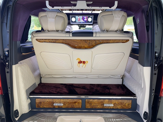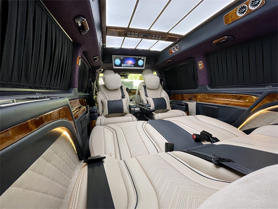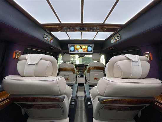 内部装饰充满法国式的浪漫,宫格灯珠镶嵌的椭圆形豪华顶棚造型设计气势磅礴,沿车身走向,两端与驾驶室隔屏和后门相衔接,形成古典对称的流线型图案。奔驰V260改装商务车全车新款电动精美布艺窗帘、控制车内电器的触摸屏操作,无不体现至尊豪华的商务形象,7座,家居、商用适合不过、定制巴赫妈祖表与顶尖的麂皮绒包覆搭配,凸显奢华大气。
