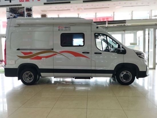 别看21款上汽大通V90B型房车紧凑,它的功能可是不少。在右侧入口位置安装了遮阳棚,侧面车门为侧拉门,尾部车门为对开式。中门平退式电动上车踏板和迎宾灯,功能非常齐全。另外该车还带有外接电源插座 ,15米防冻外接电源线 ,外接重力加水口,为防止破坏还带有锁。大通V90加长轴超高顶的外观与一般的乘用车基本无差,可以做到低调出行,白色的车身辅以简单的三色线条拉花,简约大气,充满活力,整车经过保温、隔音处理。