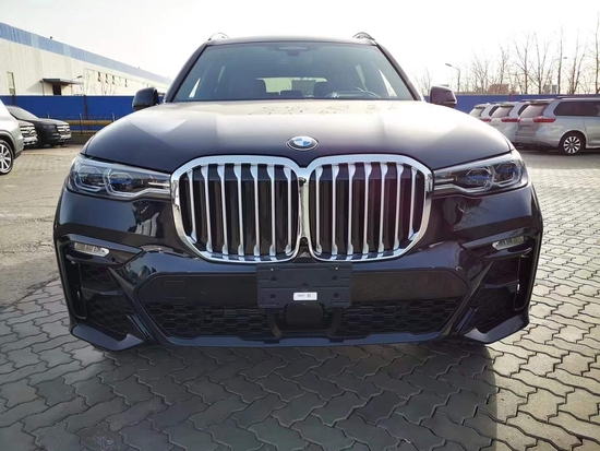 21款宝马X7 (配置|询价)双肾式大尺寸前进气格栅,大灯的外部造型上面是更加的扁平化,内部的天使眼的大灯设计在设计上面是更加的抽象化和科技感,下方的保险杠以及整体的氛围营造也是在向着沉稳的方向过度的。