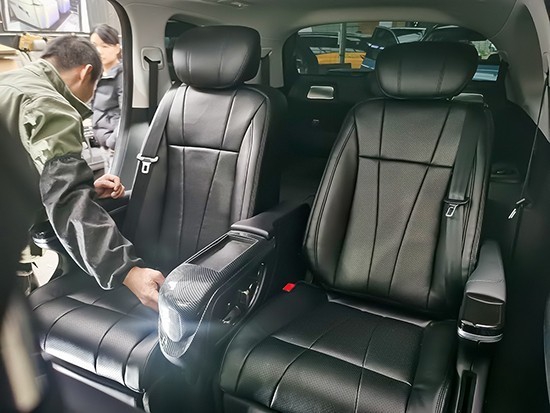 今天要说的是中排的改装案例,原车中排替换航空座椅,大大的增加了调节性功能以此来增强舒适性,座椅功能有通风、加热、按摩、手机无线充,另外带有六项调节功能分别是电动腿托、前后移动、靠背调节等。