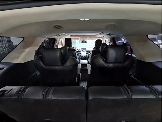 重点要说的就是二排座椅了,要做到真正的舒适豪华的话我们可以把二排座椅升级成航空座椅,做成一个舒适的独立乘坐区域,升级好后可以把靠背往后调节下来,让坐在第二排的乘客可以得到很好的休息服务,配合本身车自带的全景天窗让二排可以得到一个非常宽阔的视野,座椅除了靠背可以调节外还带有通风、加热、按摩、电动腿托等功能,和商务车的航空座椅一样,非常豪华。