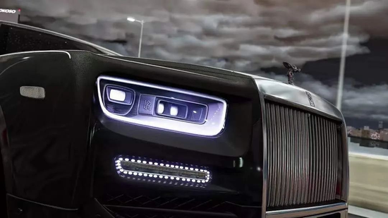 车头部分,可以看到新幻影的格栅变化较为明显,两侧LED日行灯也被MANSORY迈莎锐重新设计成了更具运动范儿的环形点阵样式。此外,前保险杠、前唇、进气口分离器、大灯罩等部位也都用碳纤维进行了替换升级。引擎盖乍看之下沿袭了劳斯莱斯原厂设计,实则采用全碳打造,表面的特殊纹理充分彰显了MANSORY锻造工艺的精益求精。