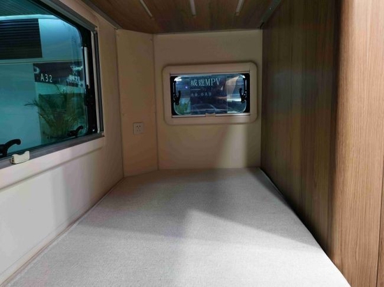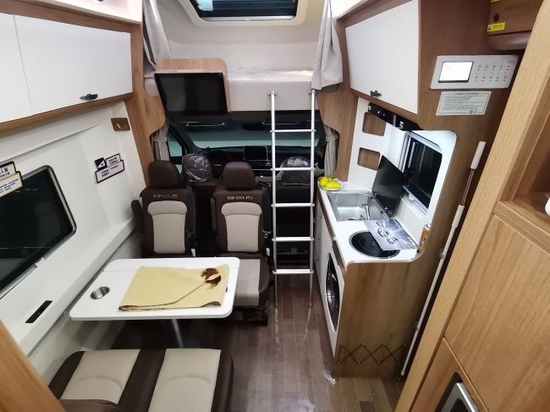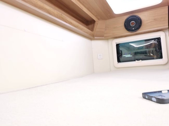 安全性能方面,这款房车配备了博世9.3版本ESP车身电子稳定系统,盲区监测,变道辅助系统等。同时这款房车的驾驶模式有三种:普通模式、ECO模式以及SPORT模式,sport模式适用于郊区或者山区道路。相对于大通前面的房车,这款房车更加智能化。这款房车配有在驾驶室上方就是一张经典的额头床,可以睡下两人。在额头床的上方有一个大天窗,天窗是外推式的,一侧也有小窗户。在床的边缘挂有一台液晶电视机和不锈钢爬梯。