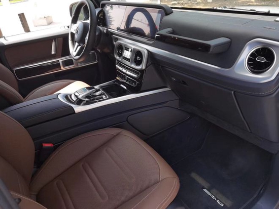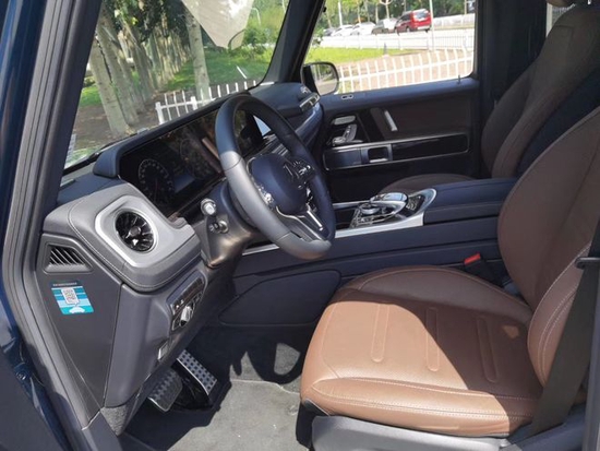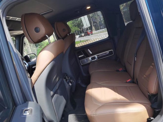 奔驰G550车内采用深色调与黑色钢琴漆装饰,棕色真皮运动座椅非常舒适,方向盘以高档真皮包裹装饰,触感极其细腻。配有钢琴漆装饰的操控台,稳重大气,同时提高了整体的质感。各种功能按钮应有尽有,丝毫不次于豪华轿车的功能,后排空间非常宽敞,且后排的座椅可以折叠,以得到更宽敞的储物空间。