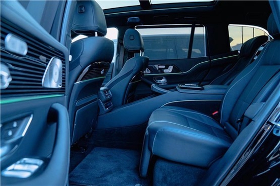 迈巴赫GLS600后排双独立行政座椅,椅背倾斜角度最高可达43.5度,后排腿部空间最大可达1.34米,带来头等舱级乘坐体验。