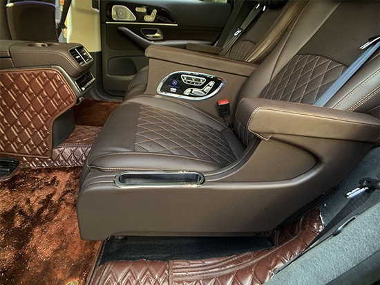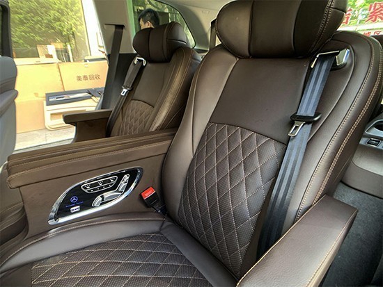 座椅的开关控制面板是奔驰专用开关面板,可控制电动腿托、前后移动、靠背调节和通风、加热、按摩等功能,两个面板各带一个USB充电插孔提供手机充电。