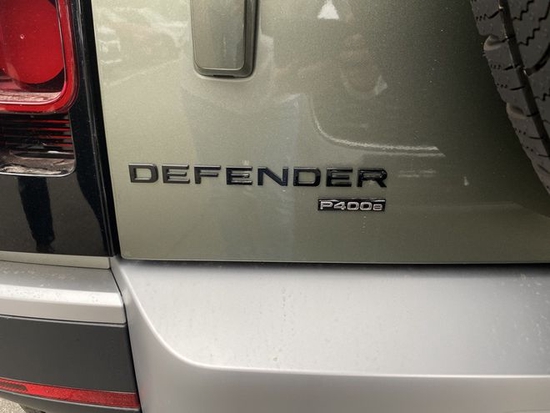全新路虎卫士110 P400e插电式混动版本车尾左后翼子板上的充电插口表明了其新能源车的身份,另外,车顶和A柱采用了绿色涂装,而B、C、D柱经熏黑处理,营造出具有特色的悬浮式车顶的视觉效果。