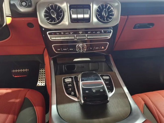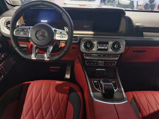 21款奔驰G63AMG档次、质感和科技配置都明显提升全新奔驰G级的内饰相比老款有了明显的提升,采用了奔驰最新的双屏幕式设计,全液晶仪表盘和中控台屏幕都达到12.3英寸,同时内饰质感和工艺都有了很大的进步。中控涡扇式空调出风口也颇具设计感,车内的高档皮革内饰以及标有V12钻石图案设计的座椅、车门面板和脚垫,无不彰显着车主的尊贵身份。
