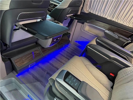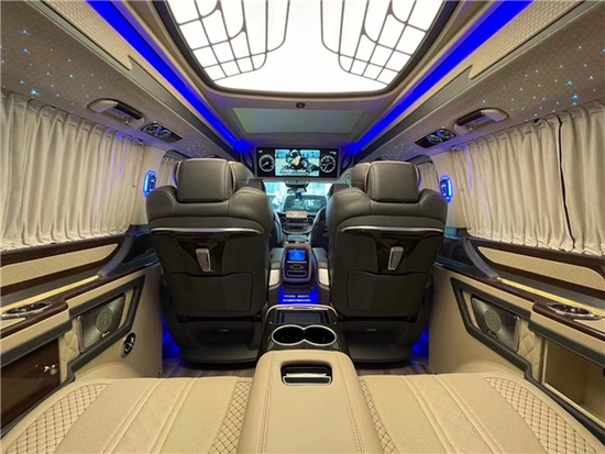 奔驰V260L改装商务车作为一款商务车的亮点就是后排的舒适度,座椅晋级为航空座椅,严厉依照人体工程学规划,内置座椅加热、通风、按摩、四段八向调理、180°旋转、座椅回忆、腿拖支撑,乘坐感受十分舒适,广大的联系133-1185-6676座椅就像是自驾的沙发上一样,尤其是整车装备了车身防侧倾设备,在高速过弯时也不会又太显着的测倾感,作为商务车他的体现十分好。