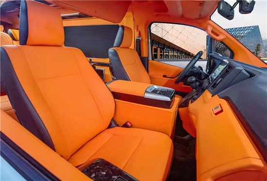 整车内饰配色布局比较偏向商务化风格,9座车型更适合用于公司商务接待;亦或者两个家庭出行也是一个不错的选择。细节上,侧窗有电动百叶帘;220V电源接口和手机无线充电板,为后仓的乘客带来更多舒性和便利性。