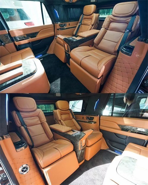 林肯领袖一号共有6个座位,前端是两个折叠式座椅,也称为秘书座,后排座椅是主座,它带有电加热,通风和按摩功能,最大程度还可以放平休息,出远门时候,它是最适合的,累了可以按摩,渴了可以烧水喝,无聊可以看看新闻和上上网。