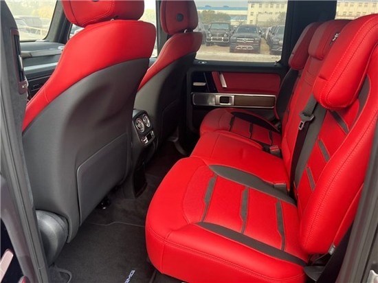 21款奔驰G63后排有独立空调、充电接口、座椅配置了头枕,中央扶手里有杯架。后排座椅可以调节靠背角度,也带有加热功能,支持按比例放倒。