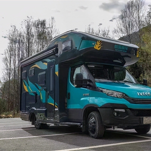 本款房车是一款基于进口依维柯New Daily底盘改造的自行式C型房车正式上市。新车型在原本的E途系列基础上增加了许多黑科技的配置,如世界顶级的丹拿音响、富声功放和JBL低音炮、带水平调节的四方位电动支腿和强大的水电等配置;其次最大的亮点在于新车型上采用了防弹级第四代五明治碳纤维车身材质,车内大量采用轻量化材质,提高车身强度的同时又降低车身重量;此外排放标准也提前满足国六B阶段。新车型名为戴德E途O MAX房车。VX:YH_ZF-2020——1 3 3 2 1 9 5 6 6 7 9官方指导价228.8万元起售。