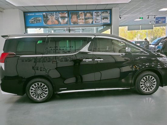 原装雷克萨斯LM300车身侧面,可以看到浓厚的丰田埃尔法 (配置|询价)/威尔法 (配置|询价)的影子,Z字形车窗镀铬饰条更具辨识度和奢华感。B柱倾斜角度很大,与上下两条镀铬装饰条形成非常有设计感的“S样式”。侧面采用了造型独特的镀铬饰条。新车的车身尺寸是5100/1980/1950mm。