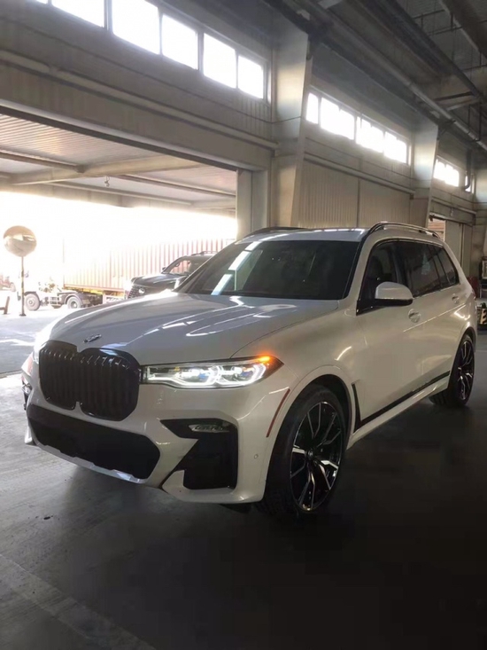 21款加版宝马X7 (配置|询价)(配置|询价) 白/黑 配置:卓越豪华包(激光大灯、星空全景天窗、空气香氛装置、后排遮阳帘、前座椅通风、水晶档杆及水晶控制组件、杯架、真皮仪表台、前座椅按摩、18项电动调节座椅、避让辅助、车道保持、抬头显示、环影、驾驶辅助增强系统、五区空调、ACC自适应巡航、旅行舒适系统、前交叉交通警报、转向车道控制系统、电吸门)、M运动包(M运动套件、黑色M制动卡钳、22寸V型双五幅双色高性能轮) 拖钩 M黑色运动刹车卡钳 BMW手势控制 (无曼哈卡顿音响-600) 黑色高光配件。