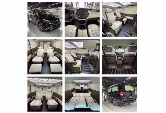 奔驰威霆及奔驰V260可以改装项目清单(包括但不限于):航空座椅、三连座沙发、柚木地板、全隔断、带升降电视、半隔断吧台、吧台隐藏座椅、电动中门、电动尾门、导航、桃木方向盘、方向真皮包、覆仪表台真皮包覆、驾驶座真皮包覆、驾驶座电动调节、驾驶座电动加热、驾驶座电动通风、驾驶座电动按摩、驾驶座气动按摩、驾驶座加棉、驾驶舱鹿皮顶、后舱鹿皮顶、后舱星空顶、九宫格顶灯、ABCD柱鹿皮包覆、遮阳板鹿皮包覆、驾驶位门板真皮包覆、中门门板真皮包覆、后尾门门板真皮包覆、全车侧壁真皮包覆、全车私密手动窗帘、迎宾踏板、主副驾驶中央扶手箱、主副驾驶扶手带冰箱、吸顶电视、主副驾驶靠背小桌板、可拆卸小桌板车、内氛围灯、吊顶、外观包围、轮毂、大灯、、等其他项目