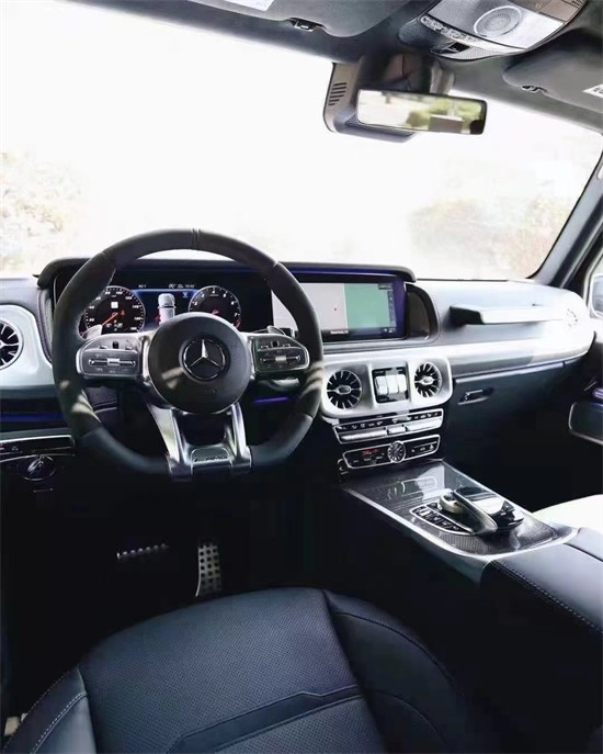 21款奔驰G63 (配置|询价)豪华精致的真皮包覆提供了足够的舒适性和支撑性,通风和加热功能让乘客免受高温和寒冷的煎熬。中控台多处均采用碳纤维材料覆盖,带彩色TFT显示屏的AMG仪表盘、AMG主菜单和单独的挡位显示器以及采用白色照明的AMG门槛。名贵的选材及精湛的内装令人拍案叫绝。
