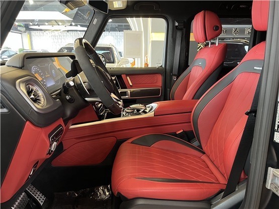 21款奔驰G63经过全新改款内饰豪华气派,卓越的品质和精致的工艺在车内体现得淋漓尽致,对细节的精益求精是内饰设计中的重要原则。车内采用深色调与桃木装饰,黑色真皮运动座椅非常舒适,触感极其细腻。