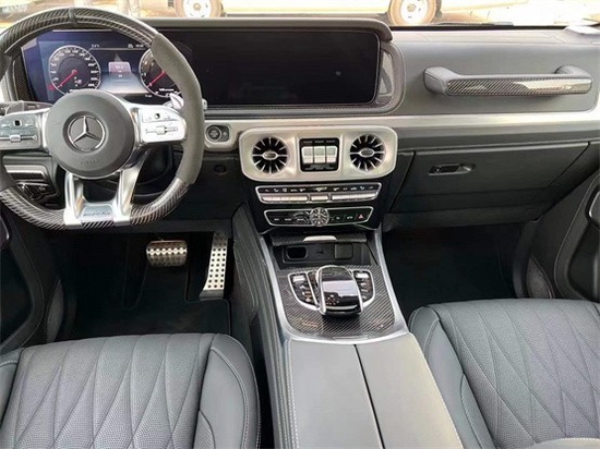 21款奔驰G63经过全新改款内饰豪华气派,卓越的品质和精致的工艺在车内体现得淋漓尽致,对细节的精益求精是内饰设计中的重要原则。车内采用深色调与桃木装饰,黑色真皮运动座椅非常舒适,方向盘以高档真皮包裹装饰,触感极其细腻。配有桃木装饰的操控台,稳重大气,同时提高了整体的质感。