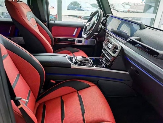 22款奔驰G63特选独家双拼菱形格尊贵内饰搭配碳纤维装饰风格彰显了顶级经典越野车的风采。奔驰G63 AMG进口SUV豪车内饰设计更具时代感也更加豪华。后排空间非常宽敞,相比之前提升极其明显,除此之外前后座椅的触感与舒适性以及后排座椅的倾斜程度均作了相应的调整,标配了64色氛围灯,让这款全新的汽车能够在长途旅行中提供更加舒适惬意的场景。