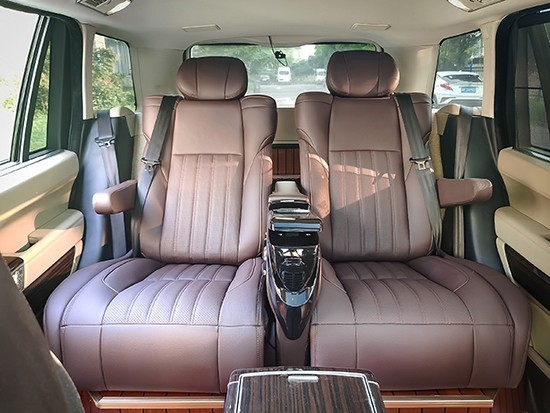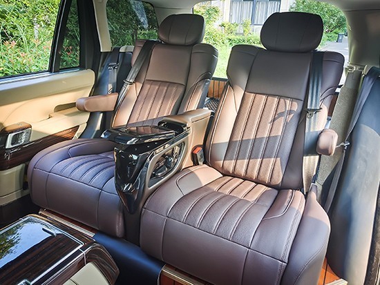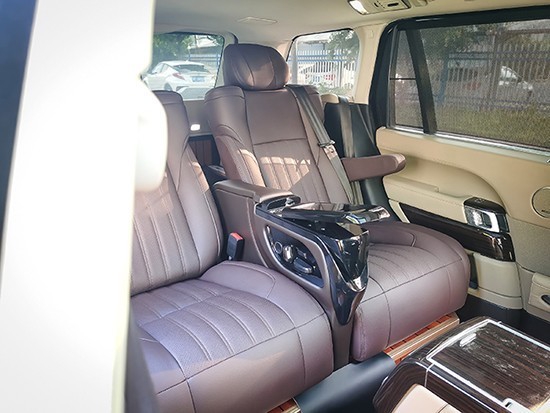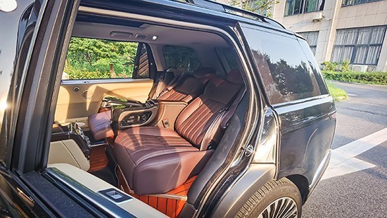 后排升级航空座椅后从原来五座变更成四座,如果是商务用车四座应该是刚好够用,如果是家用车的话应该比较勉强,家里有两台车的情况下可以考虑四座带航空座椅揽胜,因为航空座椅比一般座椅要好用很多,座椅带的六项调节功能可以让后排乘坐的人员坐姿得到很好的放松和舒缓。