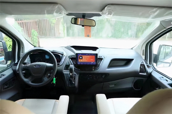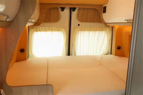驾驶仓区域,搭配着多功能的方向盘,具备调节音量,接听电话,定速巡航等功能。中控台配置液晶显示屏,搭配导航倒车影像系统可更好地让司机驾驶房车,提高行车安全性。正副座椅皮革包覆,给驾驶舱的乘客提供更好的乘坐体验。