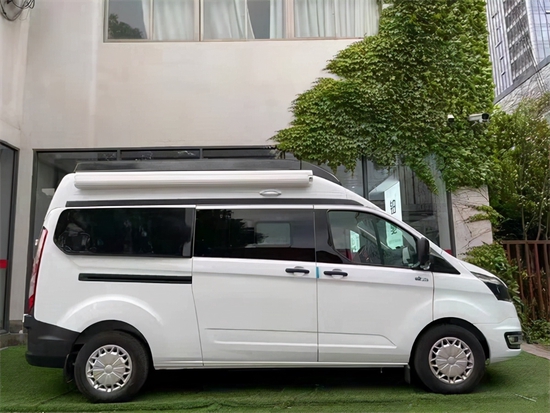 铂驰新款福特V362B型房车。白色车身颜色搭配黑色车窗玻璃也是非常不错的。这款房车长宽高分别为5341*2032*2460mm,轴距为3300mm,总质量为3300kg,整备质量为2820kg。核载五人,不过可以定制成4人或6人座椅设计。房车外部配有2.5米电动遮阳蓬、外接水电接口、VX:YH_ZF-2020——1 3 3 2 1 9 5 6 6 7 9车顶帐篷上方还有200w的太阳能充电板。