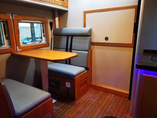 尾部横置上下床很好的利用了该区域的空间,床垫支撑性好,提供了不错的平躺感受;上铺翻转式单人床收起后不占用空间,增加了整体区域的活动范围,阅读灯及充电功能也满足日常看书及娱乐需求。床铺下方与尾部储物舱相贯通,取拿物品方便。