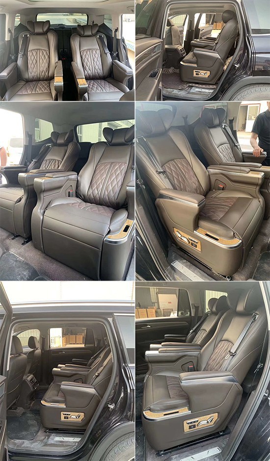 本公司专业改装以及专门为SUV车型系列研发多款专用配件,航空座椅以及内饰吧台、隔断、扶手箱等均有专用款式,不会去拿通用座椅版型去给客户改造出来。