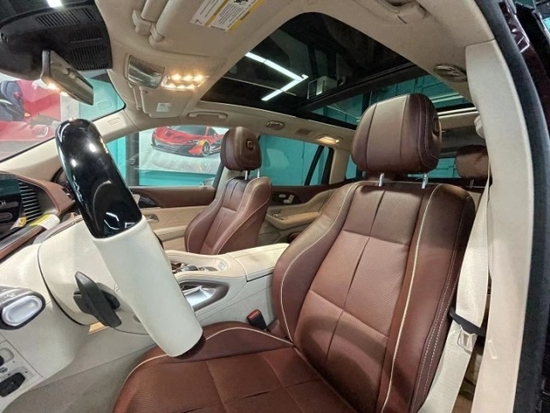 奔驰迈巴赫GLS600供四座和五座两种布局,其中四座车型第二排独立座椅相比普通版GLS更加靠后,并且带有巨大的腿拖,其后排座椅最大倾斜角度大43.5度,后排腿部空间最大达1.34米。中央由冰箱、控制台、储物空间和手机无线充电台等进行贯穿,呈现出类似于迈巴赫S级一样的头等舱设计