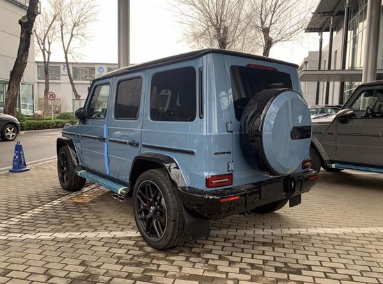 21款奔驰G63 中国瓷器蓝定制漆面 碳纤维内饰 加热方向盘 碳纤维方向盘 红色卡钳 防盗螺栓 手工打造皮革 AMG最高限速解除149mph 真皮扶手 22寸黑色锻造运动轮毂 独家定制包 暗夜包