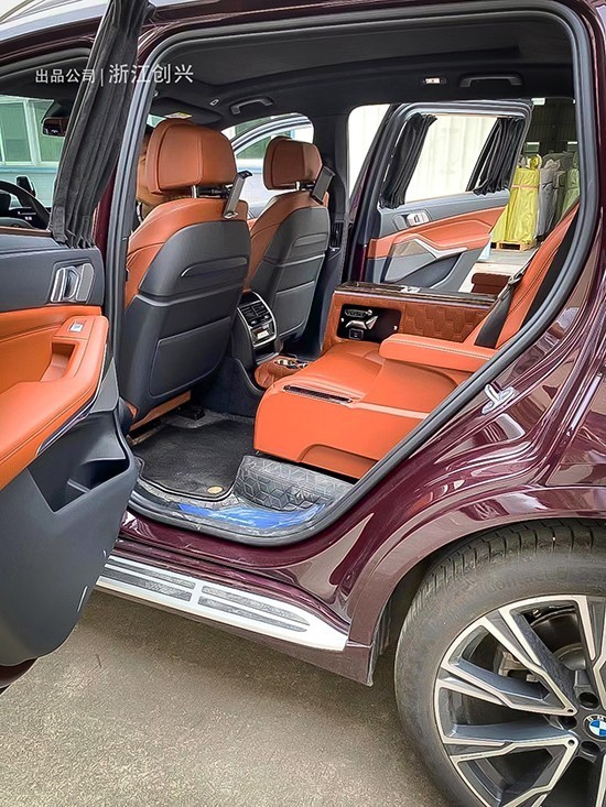 今天介绍的是X7中排的航空座椅升级案例,大家可以看到图片上的座椅和原车的有些许不同,其中最大的区别想必是三人椅取消了,中排变成了两人坐,为什么要这样去改动呢?因为中排两人坐会得到空间上的提升。