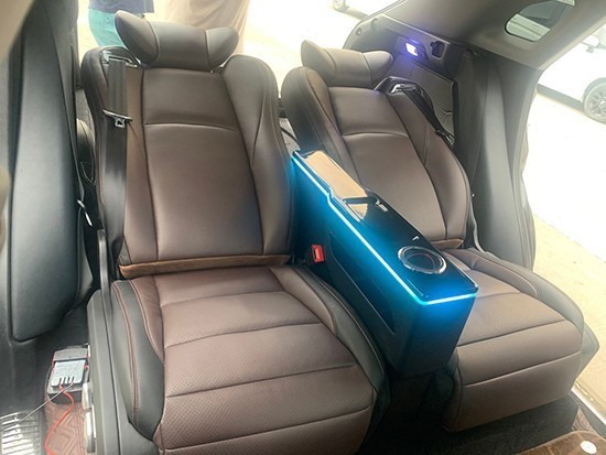座椅功能带有电动调节、前后移动、电动腿托等,另外还有通风、加热、按摩等功能,中间扶手箱还带有无线充电功能和USB充电功能,基本符合豪华车型的定位。
