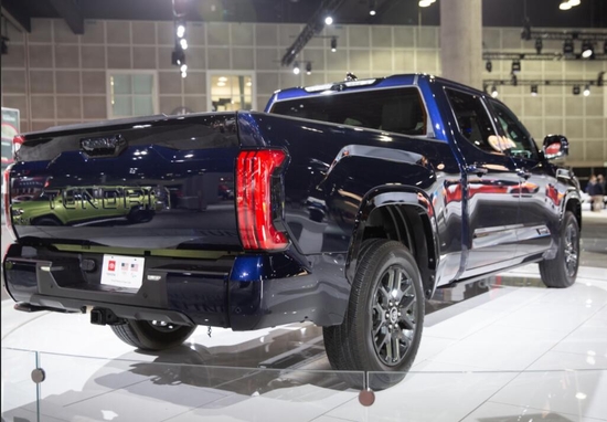 外观设计看起来更协调,运用大量的镀铬饰条,更显尊贵。网状进气格栅映衬出水平条纹造型,巨大的尺寸占据了前脸大部分的位置。侧面车门把手和底部饰条均采用镀铬材质装饰,还配备22英寸镀铬大尺寸轮毂。尾部尾箱挡板上嵌有硕大的“TUNDRA”字样,竖形排列的后尾灯更加时尚。