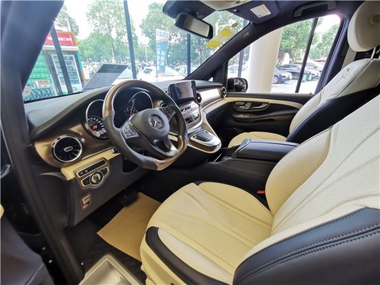 当然,作为一款主打舒适性的MPV车型,新款9速奔驰V260L巴塞罗那版二排乘坐体验一定是重中之重。奢华航空座椅带有360度旋转多达14项调节功能(按摩5项、腰托4项、通风、加热、记忆3项、还有7种颜色氛围灯等),以及170°符合人体工程学设计能使您更有效的解除舟车劳顿。是商务车上少有配置。乘坐舒适性和安全性是同类车型里最高,车辆配有一个全景天窗,可满足不同乘客使用需求,带有雨量感应等功能,雨天可自动关闭天窗。