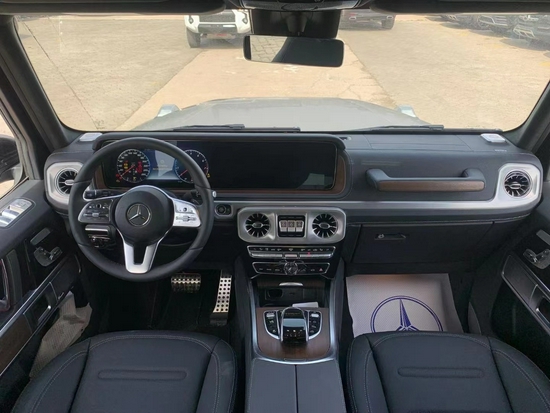 2021款奔驰G550车内采用深色调与桃木装饰,棕色真皮运动座椅非常舒适,方向盘以高档真皮包裹装饰,触感极其细腻。配有桃木装饰的操控台,稳重大气,同时提高了整体的质感。各种功能按钮应有尽有,丝毫不次于豪华轿车的功能。