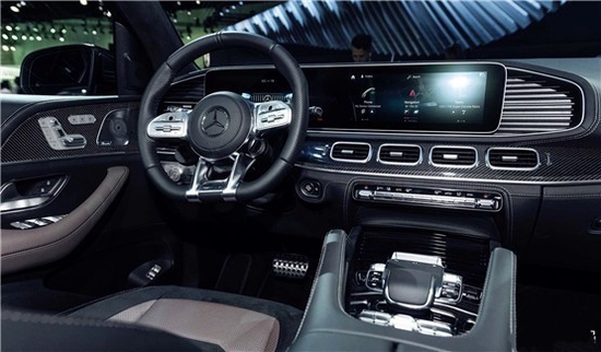 21款奔驰GLS63内部还填充了大量的银色饰条,内部的灯带被刻画的很讨巧,点亮之后,将会发出靓丽的光芒,直接运用了奔驰家族的最新设计风格,整个内饰主打简约时尚与豪华感,特别是12.3英寸的液晶屏幕。