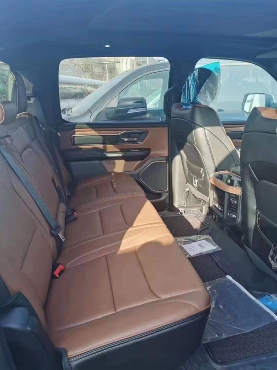 道奇公羊的车厢内,有三排座椅,整体布局与国内的GL8 (配置|询价)基本相同。左右分开布置的第二排座椅,各自独立,配有加热、按摩等舒适功能,每个座椅独立配一个操控手柄,各项功能由乘坐者自己控制。另外,两个座椅都可以360度自由旋转,不过是手动操作。后排座椅有三个座位,左右两个配有三点式安全带,中间的为两点式。第二排与第三排座椅中间的地板上有一个办公桌支腿安装槽,大约300mm X 600mm的办公桌,安装极为方便,而且非常有用。第二排座椅旋转一定角度后可以与后排乘员围坐一圈,开一个小型的“圆桌会议”不成问题,对于车内办公甚至于打牌娱乐等都极为方便。