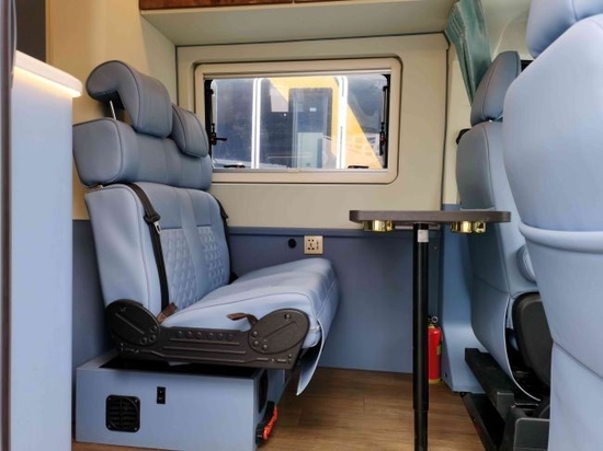 单从外观看去,B型房车就和我们常见的V90 (配置|询价)轻客一样。该车采用了高顶的设计,外观长度5.94米,宽度2.1米,高度2.55米,轴距3.76米,可以悬挂蓝牌在城市内行驶。