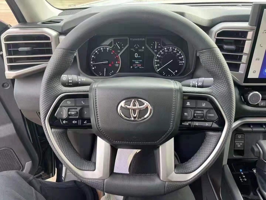 现在时代变了,年轻消费群体越来越追求科技配置,丰田设计师团队也不得不做出一些改变,这次全新丰田坦途皮卡车内饰科技氛围已经相当强烈了,不仅有全液晶仪表盘加持,而且提供了超大面积悬浮导航屏幕,视觉效果甚至能够媲美特斯拉,TRD高性能版本更是提供了丰富的内饰装饰,比如红色真皮面料座椅,搭配有专属刺绣装饰。