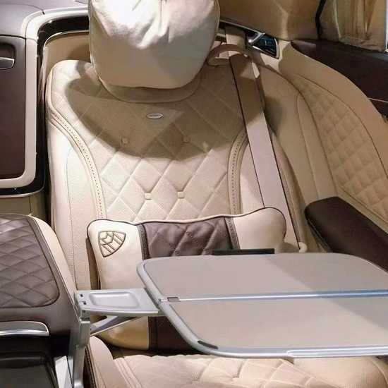 奔驰迈巴赫S680普尔曼防弹加长包括车门的内衬以及座椅全部采用了一种菱形格栅的结构造型之奢华让人赞叹!配置方面例如顶尖柏林之声立体音响,辅助,如此大的一款车竟然只是标配了四座的航空座椅,这其实并不是空间上的浪费,只是空间的再利用而且是完美的利用!