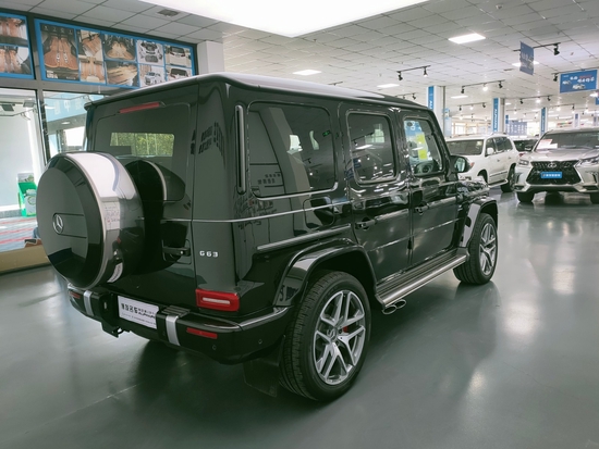 2021款奔驰G63带有镀铬垂直格栅条的散热饰板打造出别具一格的前脸造型。AMG 车身风格组件等装备的点缀进一步提升了质感,让车辆前端更富表现力。并且标配夜色组件包括高光黑色车轮、颜色稍暗的照明系统、喷涂曜岩黑色漆的精选附加部件以及深色后车窗,令车辆更具个性气质。