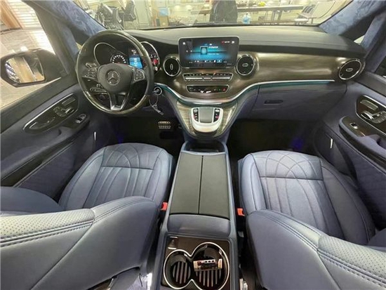 奔驰V260L级豪华多功能车的高品质内饰将为您打造一处家外爱巢。设计出色、外观独特的驾驶室,搭配拥有高品质的装饰材料。全景式滑动天窗为您带来更多光亮,令您更加贴近自然。利用2个温控双杯座或冷藏箱,您可以在旅途中随时享用温度适宜的饮品。夜晚驾驶更是一种享受,V级车的环境氛围照明系统可以利用氛围灯带来无比舒适的照明效果。