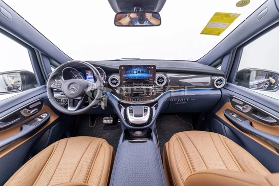 驾驶舱是奔驰经典元素与现代时尚科技的重塑,真皮&碳纤方向盘、10.25英寸触控屏、漩涡变色出风口、一体式中央扶手箱、定制车载温控冰箱,诠释奔驰新商务豪华。