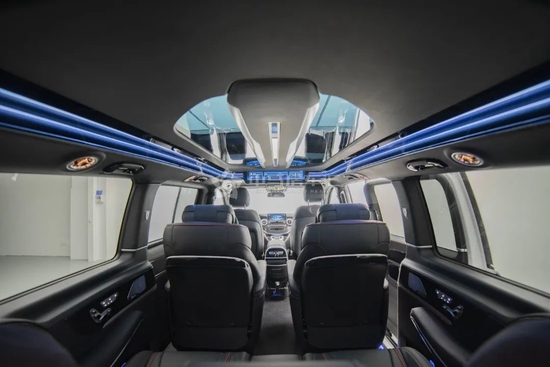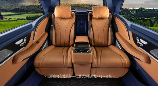 罗伦士将迈巴赫的环抱舱座椅理念嫁接到VS560MX三排座椅上,完全颠覆了商务车座椅理念,在商务车中可以跨界享受到迈巴赫级轿车座椅的舒适度。